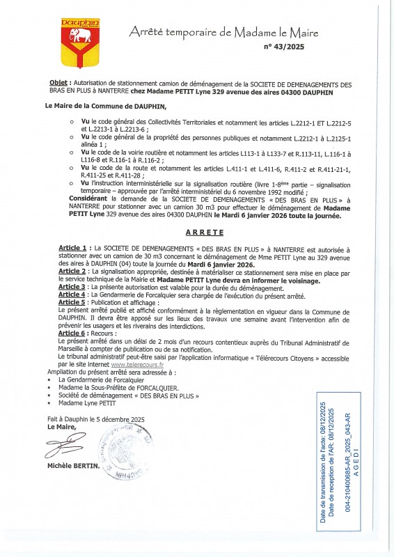 VIDE MAISON ARRETE TEMPORAIRE 40/2025