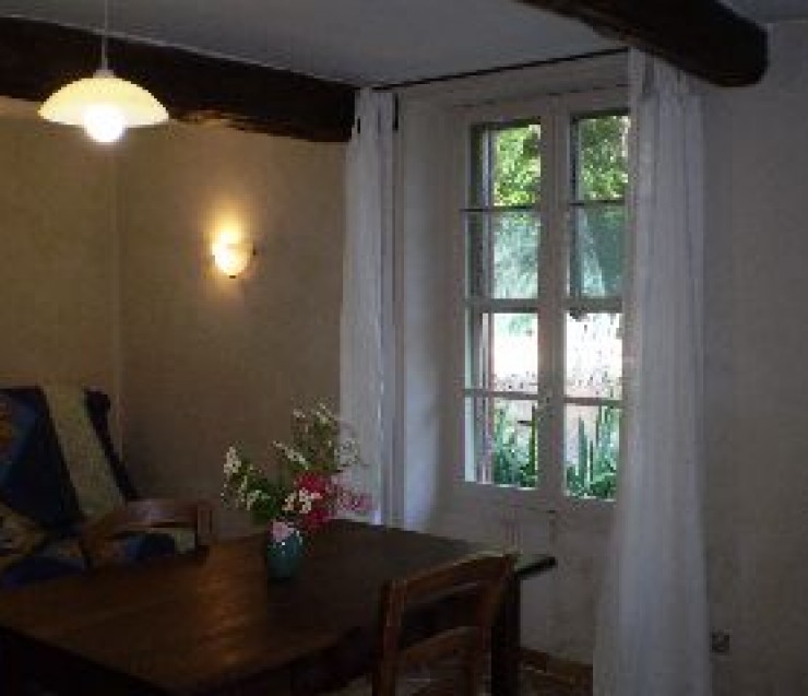 Studio 2 personnes avec cuisine et douche au rez de chaussée d'une bastide, accès à la cour et au jardin.